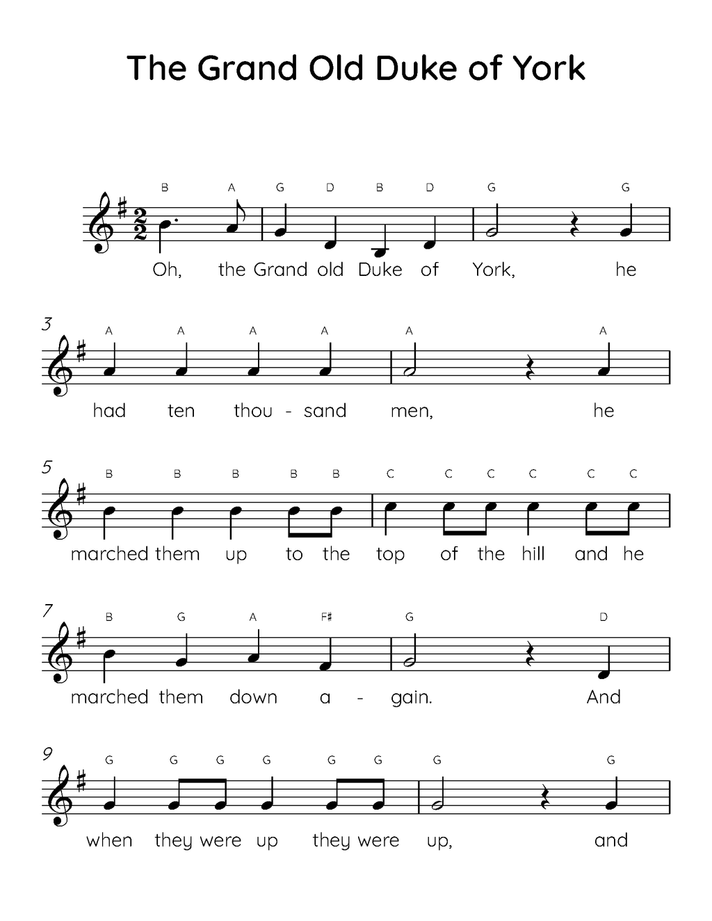 The Grand Old Duke of York Easy Piano Sheet Music